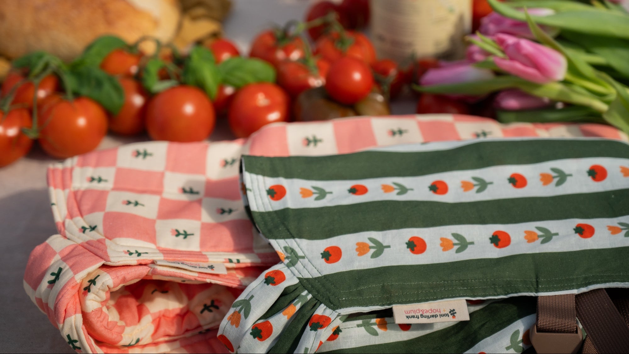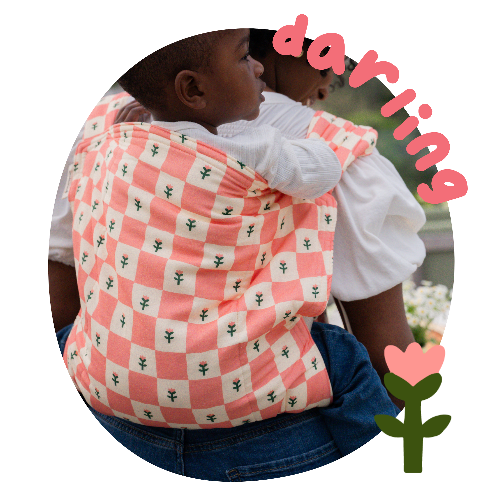 A pink checkered pattern with a little tulip to make it that much more darling.